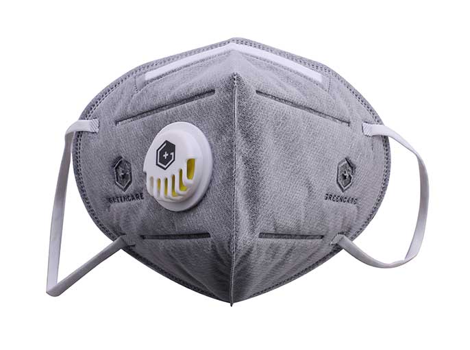 五層成人活性炭立體帶閥口罩-黑色